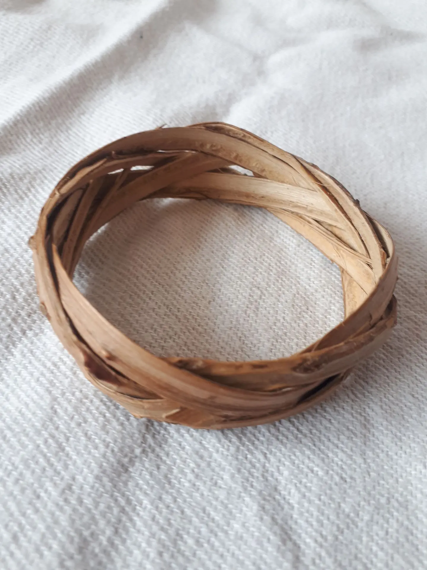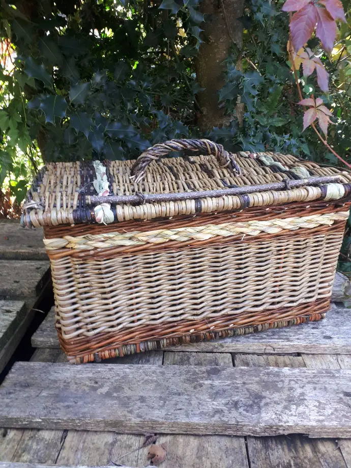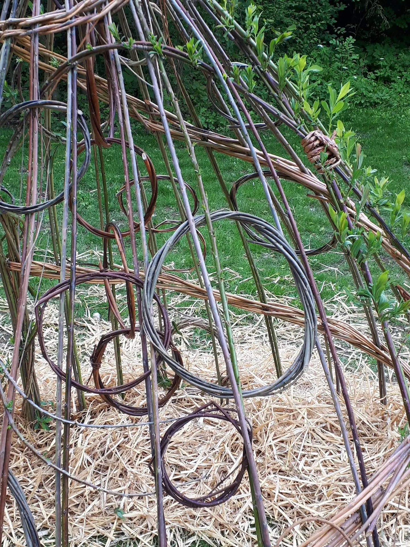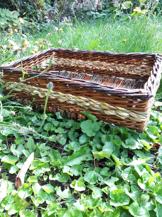J'utilise de l'osier cultivé acheté auprès d'osiériculteurs français et des matériaux sauvages récoltés aux alentours de mon atelier (mes préférées sont carex, iris des marais, massette, cornouiller sanguin, troène, ortie, bourdaine, jonc).